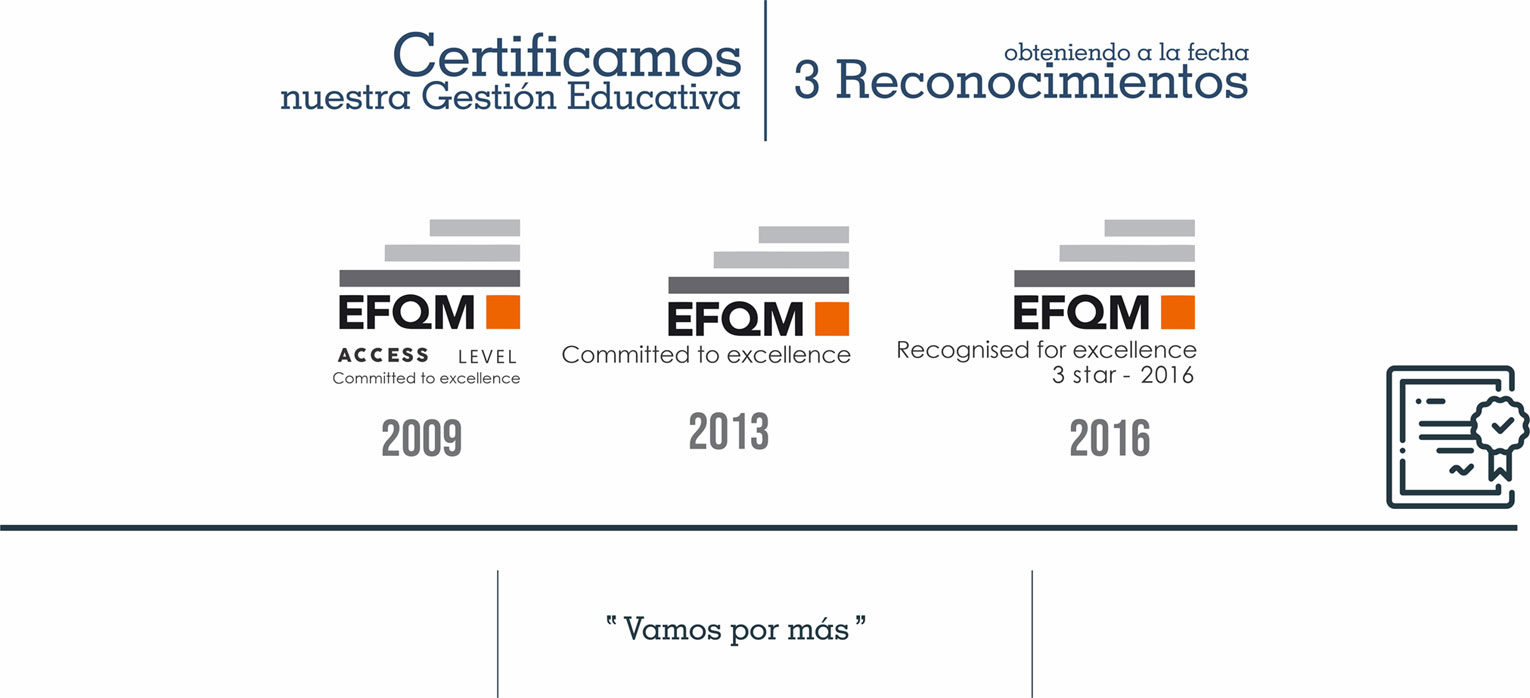 El COLEGIO SANTO DOMINGO BILINGÜE permanece en proceso de autoevaluación y mejoramiento, esto nos permite alcanzar altos estándares de calidad, reflejados en tres certificaciones de calidad, a saber: Nivel de Acceso obtenido en el año 2009, Comprometidos con la Excelencia del año 2013 y Reconocidos por la Excelencia tres estrellas del año 2016, todas estas bajo el Modelo EFQM (European Foundation for Quality Management) de Excelencia Educativa.